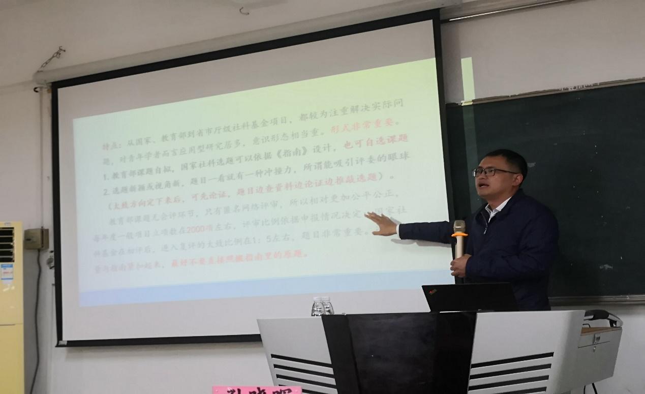 随后,为有针对性地帮助指导老师们做好本学期的课题申报,尤其是做好近期教育部课题申报工作,公司邀请广东财经大学伟德国际1946bv官网孙晓晖教授为老师们做了一场题为“形神兼备,出奇制胜——有关社科基金课题申报注意问题”专题培训。