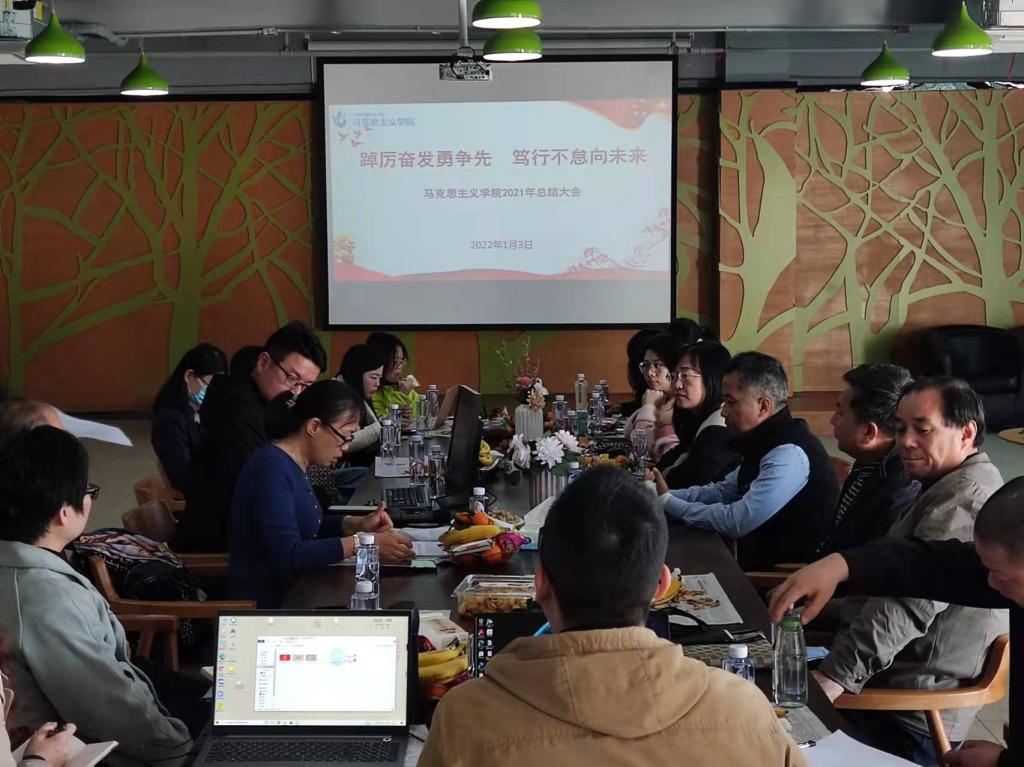 会上,全体教师首先通过视频温馨回顾了一年来伟德国际1946bv官网各类会议、比赛、教科研活动、党建活动、工会活动的精彩瞬间,让大家真切感受到马院大家庭一年来的团结奋进和艰辛付出,这一年是新成立的马院坚定步伐向前迈进的一年,也是收获喜悦与不断成长的一年。