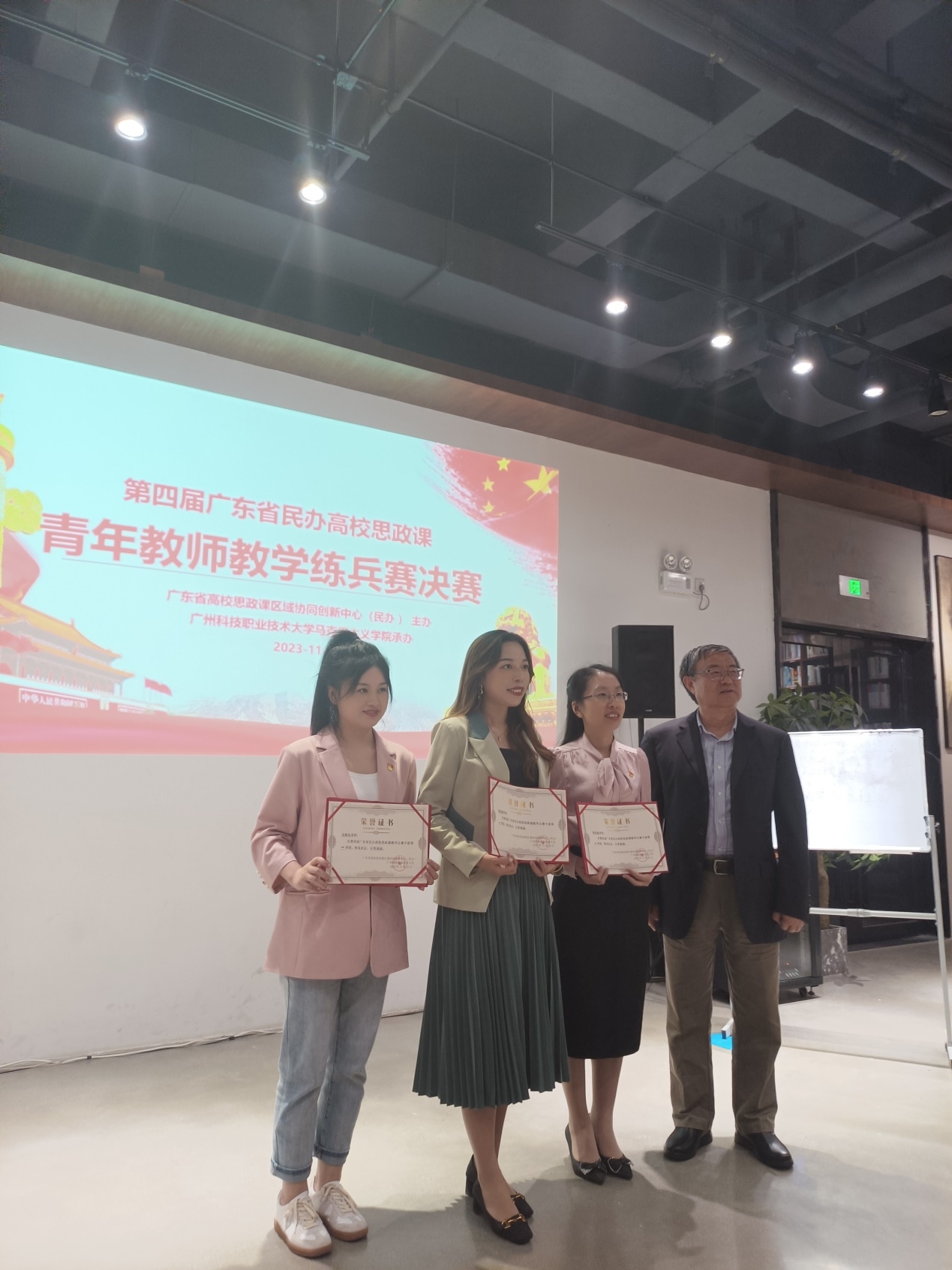 11月24日,由广东省高校思政课区域协同创新中心主办的第四届广东省民办高校思政课青年教师教学练兵赛决赛在广州科技职业技术大学举行,本次竞赛指定课程为《习近平新时代中国特色社会主义思想概论》,目的是通过练兵赛使更多的青年教师掌握教学基本功,提升教学水平和参赛能力。