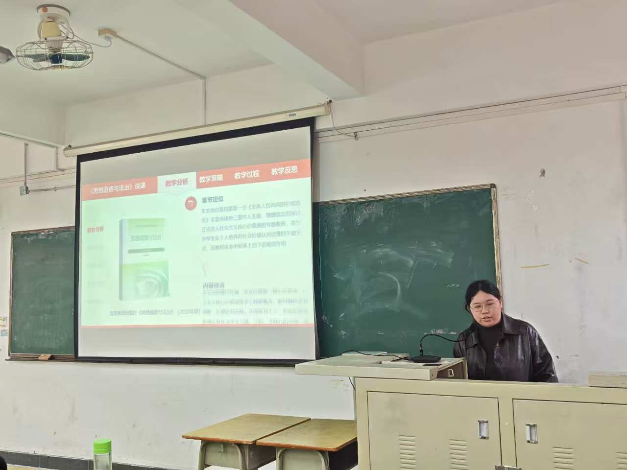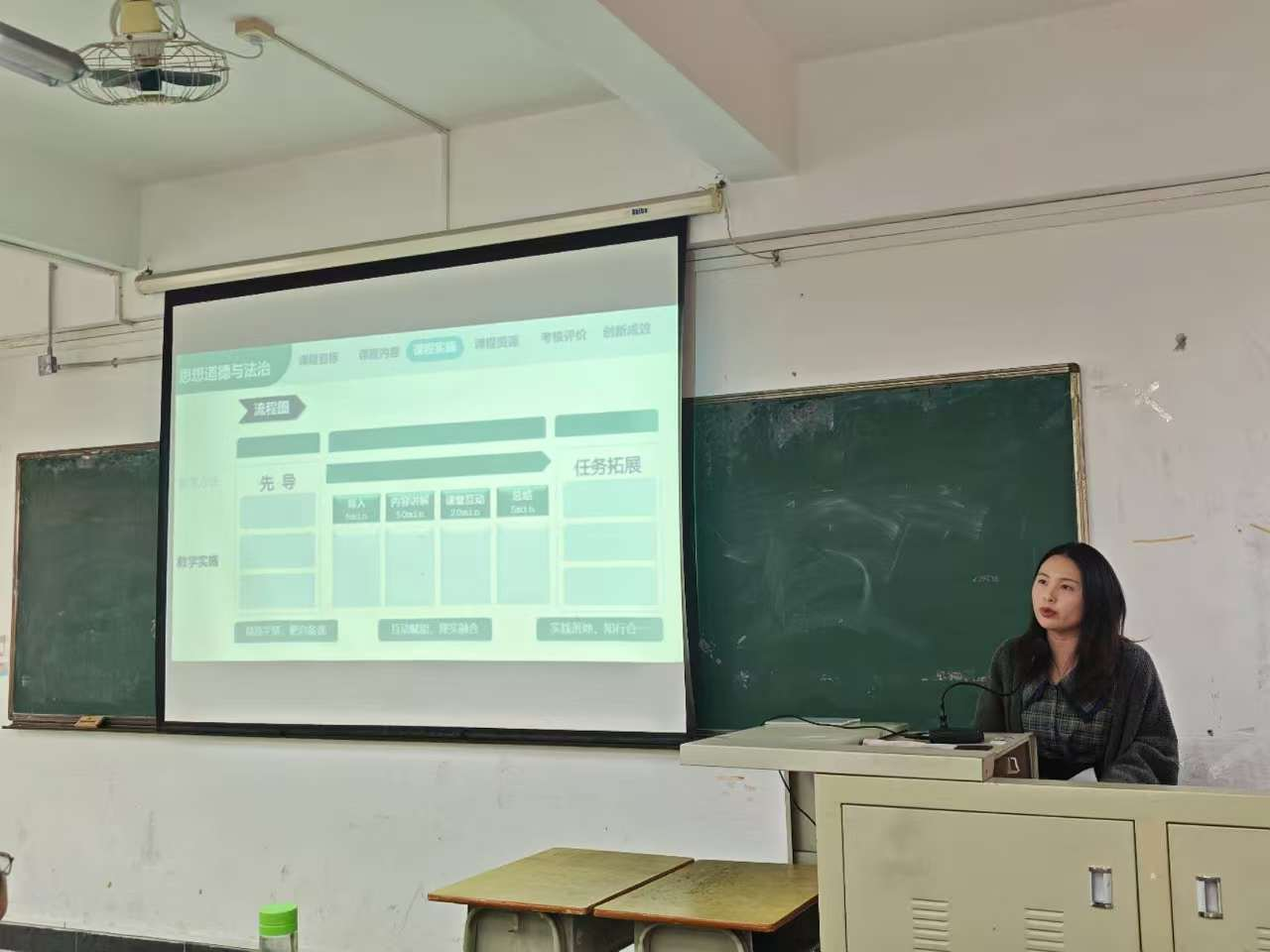 随后陈泽鹏老师进行说课汇报,陈老师的说课内容深刻展现出以员工为中心的教学理念,教学形式多样灵活。在课程定位方面针对医药卫生公司员工的特点,根据多项相关规定设计课程,目标明确、效果突出。其余老师依次进行说课演练,各具特色,展现出德法教研室全体教师严谨治学,用心教育的精神。