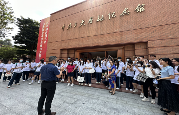 随后,师生跟随着纪念馆讲解员进行学习,在馆内深入观看了展出的文物、照片、图表、油画雕塑及立体场景等,通过一个个历史细节深入了解中共三大召开的历史背景、会议过程与成果、会议影响与贡献等。大家纷纷表示,通过展出实物、全息投影设备、光影视听空间等,仿佛零距离地“触摸”到了中共三大会议时的历史场景,并跟随着共产党人可歌可泣的故事深刻体会到了理想信仰的感召力、革命情感的感染力。