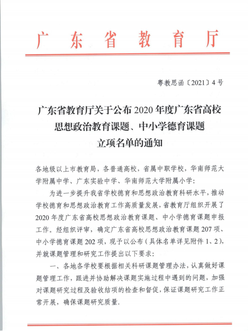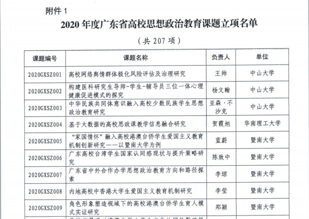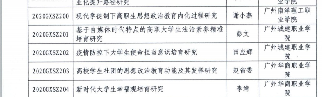 1月22日,广东省教育厅公布了2020年度广东省高校思想政治教育课题立项名单,公司伟德国际1946bv官网彭文、田应辉两名老师申报的课题喜获立项。